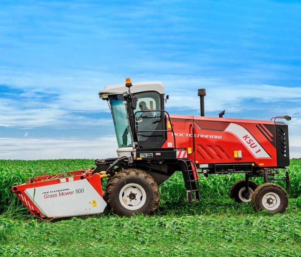 Самоходная косилка КСУ 1 сочетает в себе функции, которые востребованы в разных направлениях хозяйства. Она эффективно скашивает и укладывает в валок зерновые, зернобобовые и крупяные культуры, а также работает с кормовыми травами: скашивает, плющит и измельчает их.